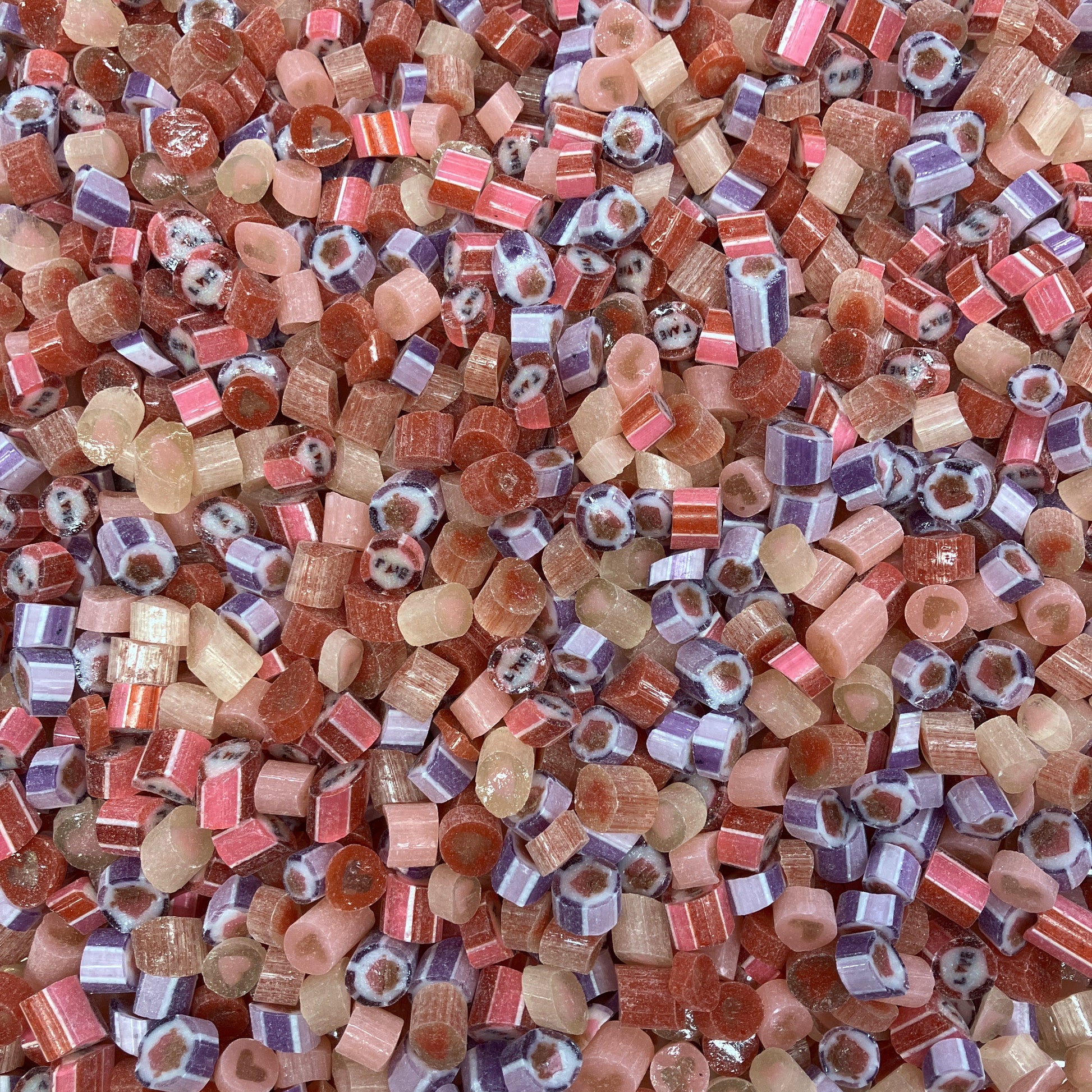 Este es un caramelo que usualmente sale de un lote de 8kg y calculando que cada dulce pesa entre 1 y 2 gramos, tenemos un estimado de 6000 a 7000 piezas por lote.